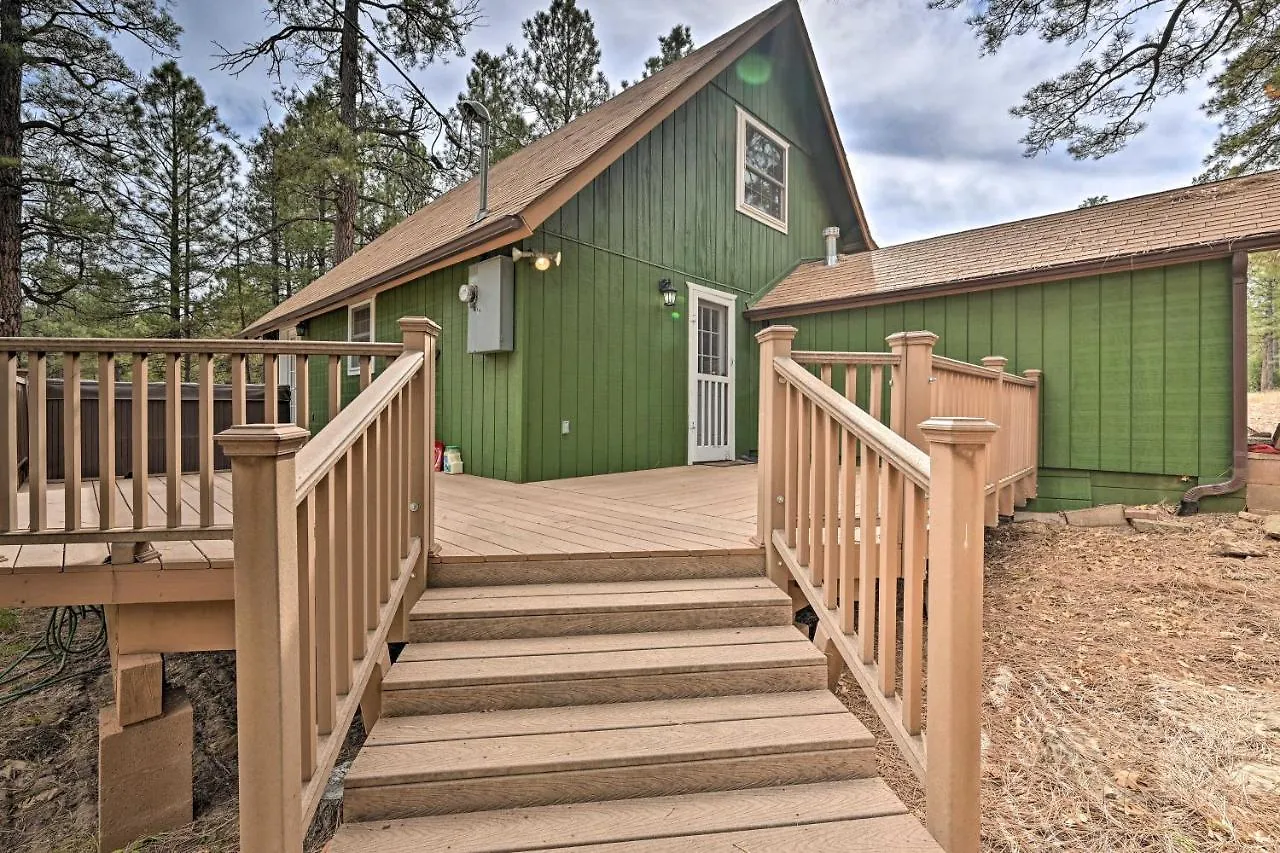 La Hot Tub And Deck Secluded Happy Jack Cabin cuenta con una cocina bien equipada con un lavaplatos, una nevera y un horno para que tengas la oportunidad de cocinar. Esta villa también está a 110 km del aeropuerto Flagstaff Pulliam. Los huéspedes pueden explorar la zona con bicicletas de alquiler que se ofrecen en las instalaciones, donde los amantes del deporte pueden practicar senderismo.